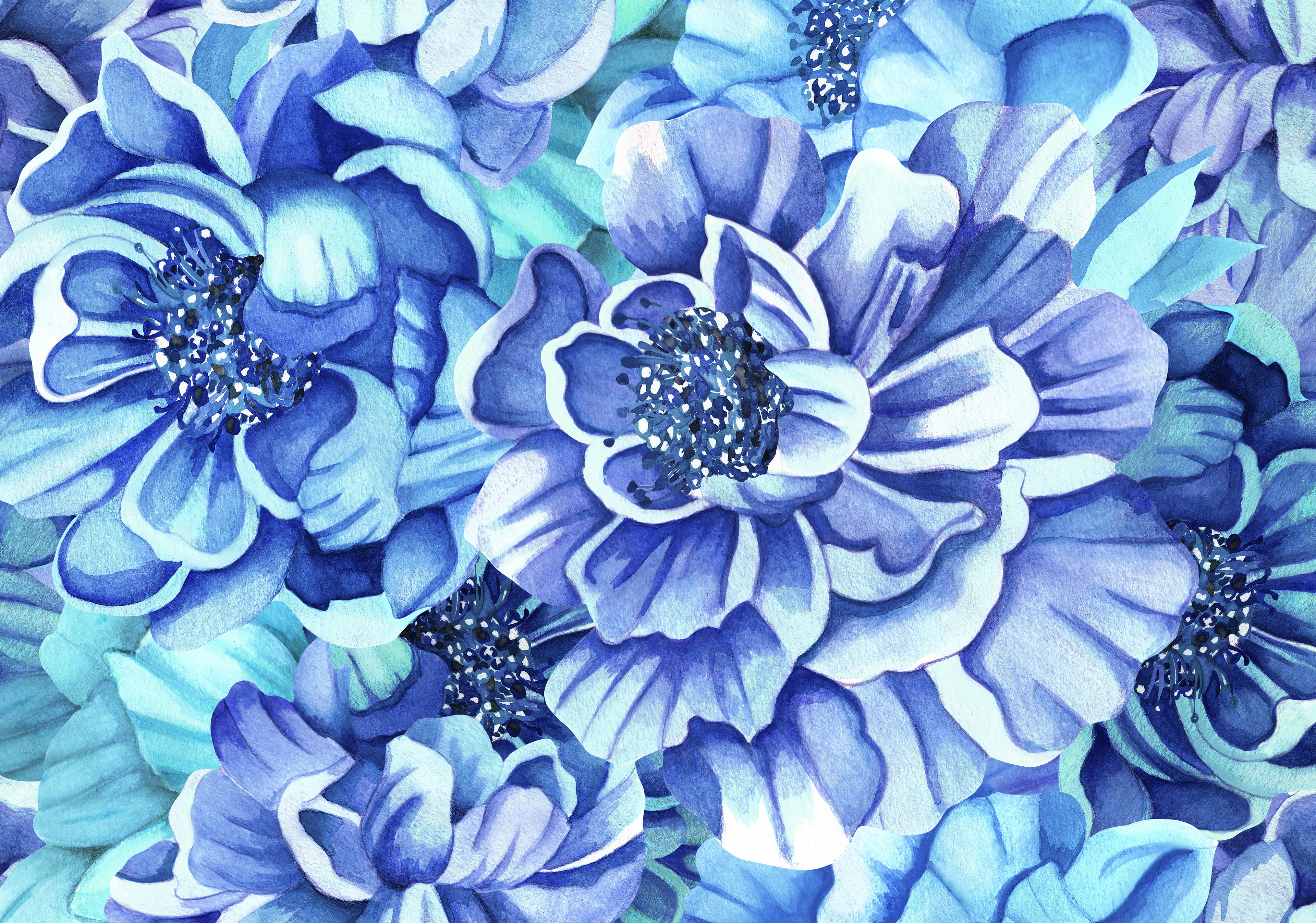A bold floral print pattern. An all over design made watercolor pencil hand-painted elements. Pencil textures make this design fresh.